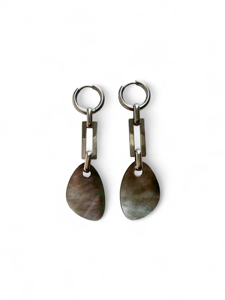 The Artume earrings are stunning statement pieces that look edgy but are extremely light-weight. You also get 2 looks in one pair of earrings as the Mother of Pearl pendants are dark in one side and lighter pearlescent on the other side.