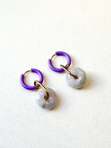 Unique mottled Purple Jade Chubby Disks. These can be removed and worn on a necklace when you get bored of wearing them as earrings!